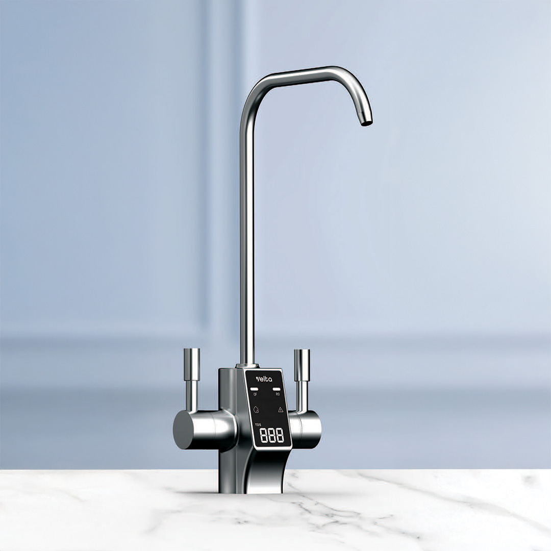 Velta HydroView+’s NanoPure™ RO filters down to 0.0001μm, effectively blocking even microscopic contaminants—keeping these hidden  threats out of your drinking water.